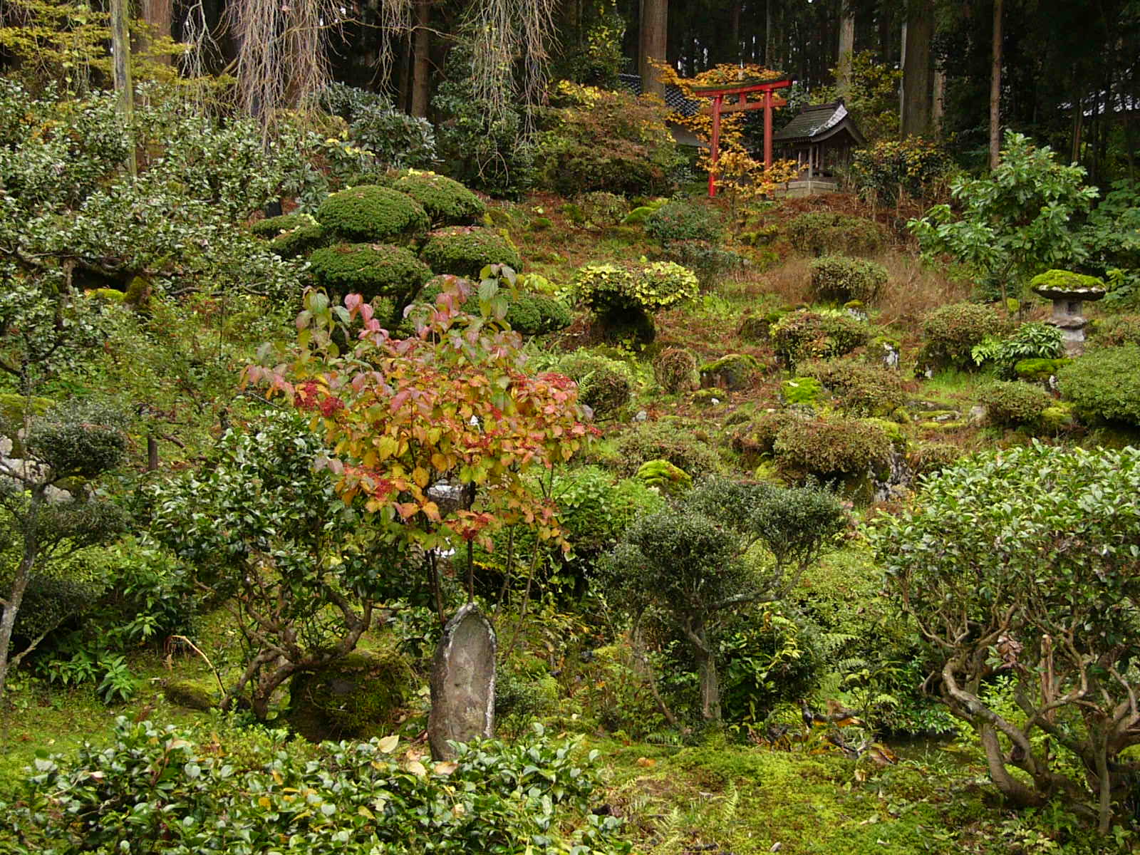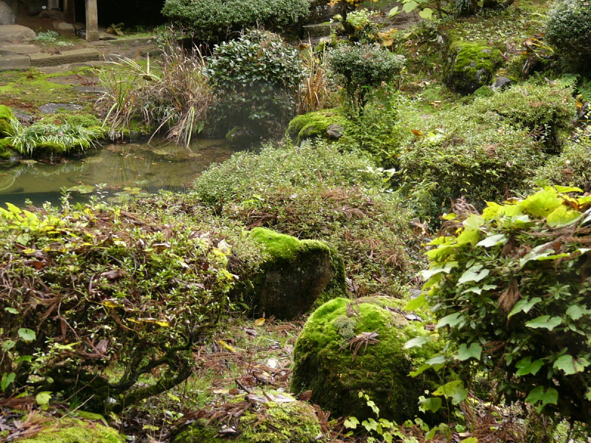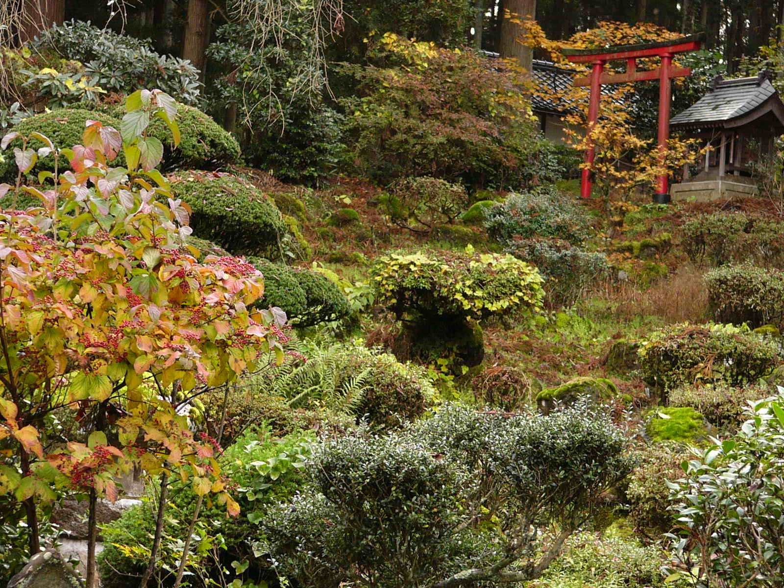 井岡寺の庭の秋 05年11月13日。少し雨が降りました。 春の満開の桜もいいのですが、この季節の庭もいいです。 古人は「庭は少しく荒れたるを佳しとする」と言いました。 掃き清められた庭も勿論いいのですが、 私は侘びた誰もいない秋の庭が好きです。