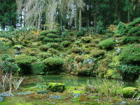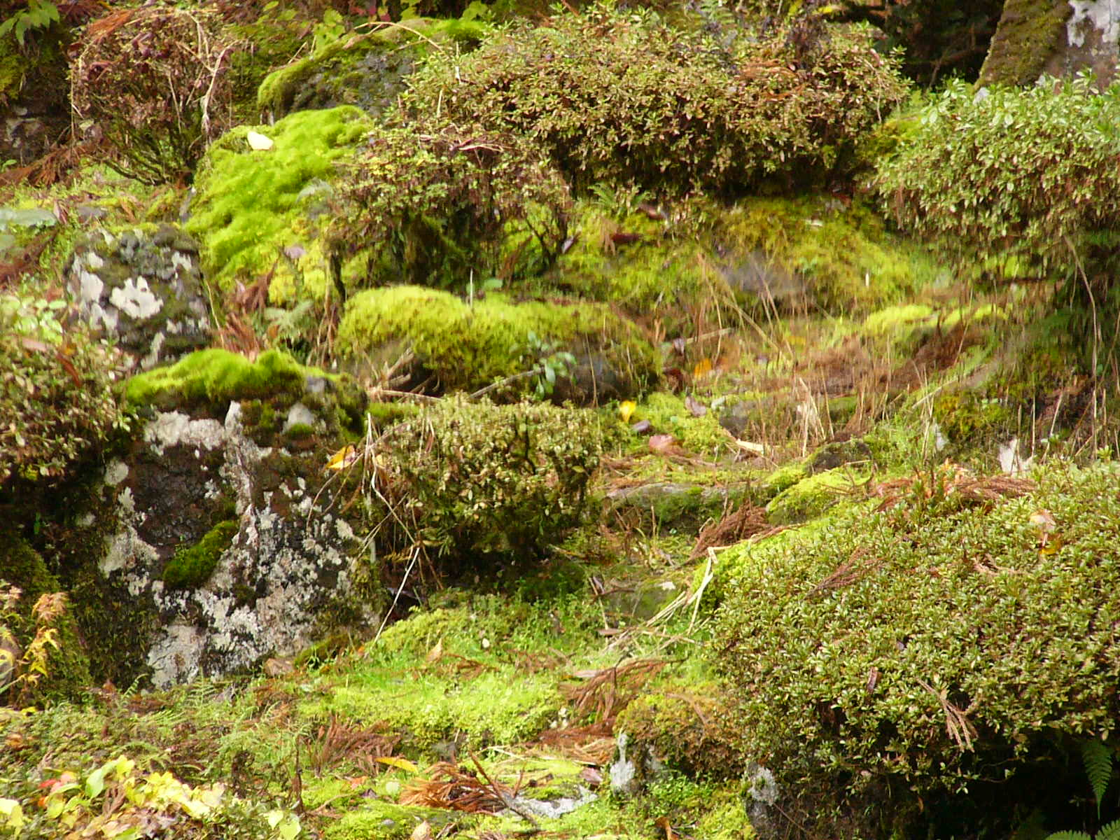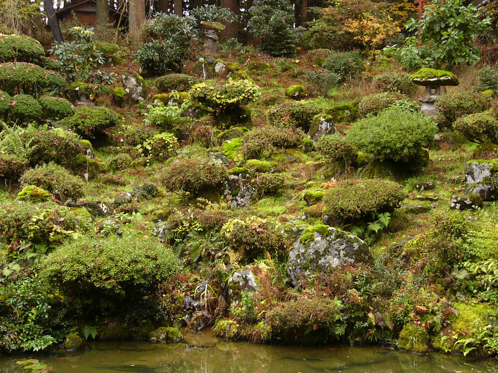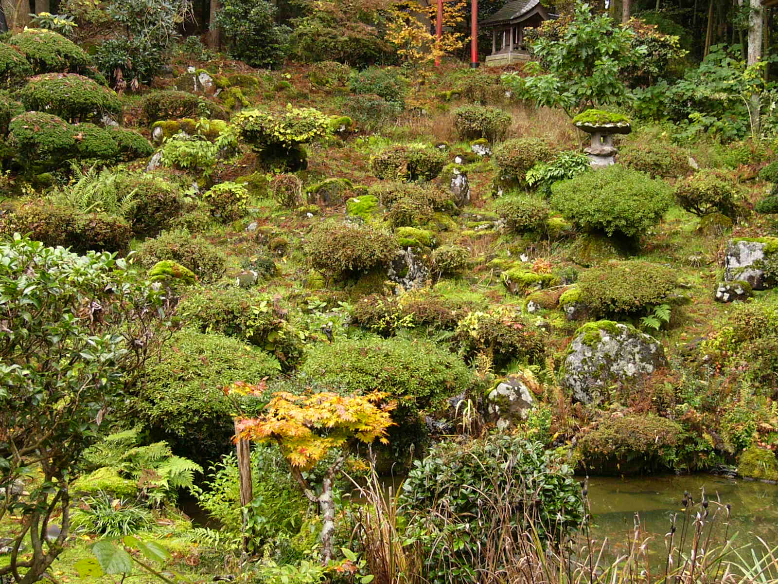 井岡寺の庭の秋 05年11月13日。少し雨が降りました。 春の満開の桜もいいのですが、この季節の庭もいいです。 古人は「庭は少しく荒れたるを佳しとする」と言いました。 掃き清められた庭も勿論いいのですが、 私は侘びた誰もいない秋の庭が好きです。
