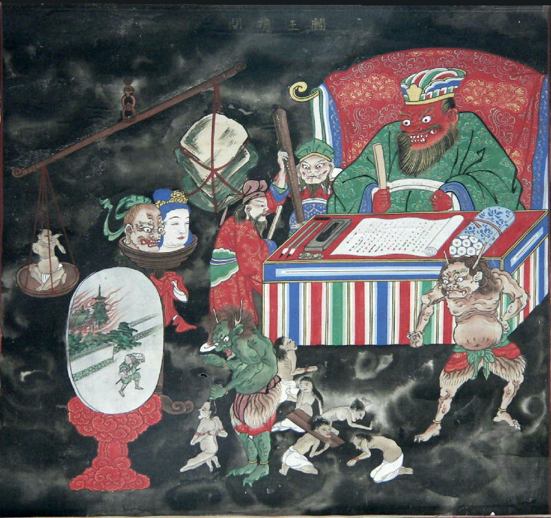 また,閻魔王の役所には「浄頗梨の鏡」をはじめ八枚の鏡があって,亡者が生前に行った善い行いも悪い行いもすべて映し出すと言われています。