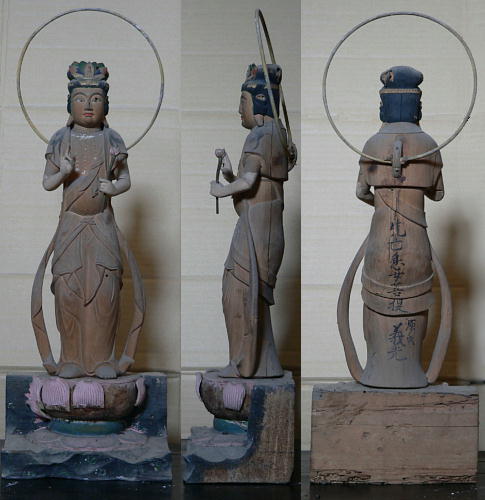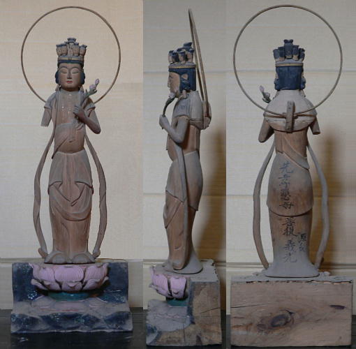 素木に彩色の技法等は、この時代の少し前に存在した南都宿院仏師の作例に近いと思われます。