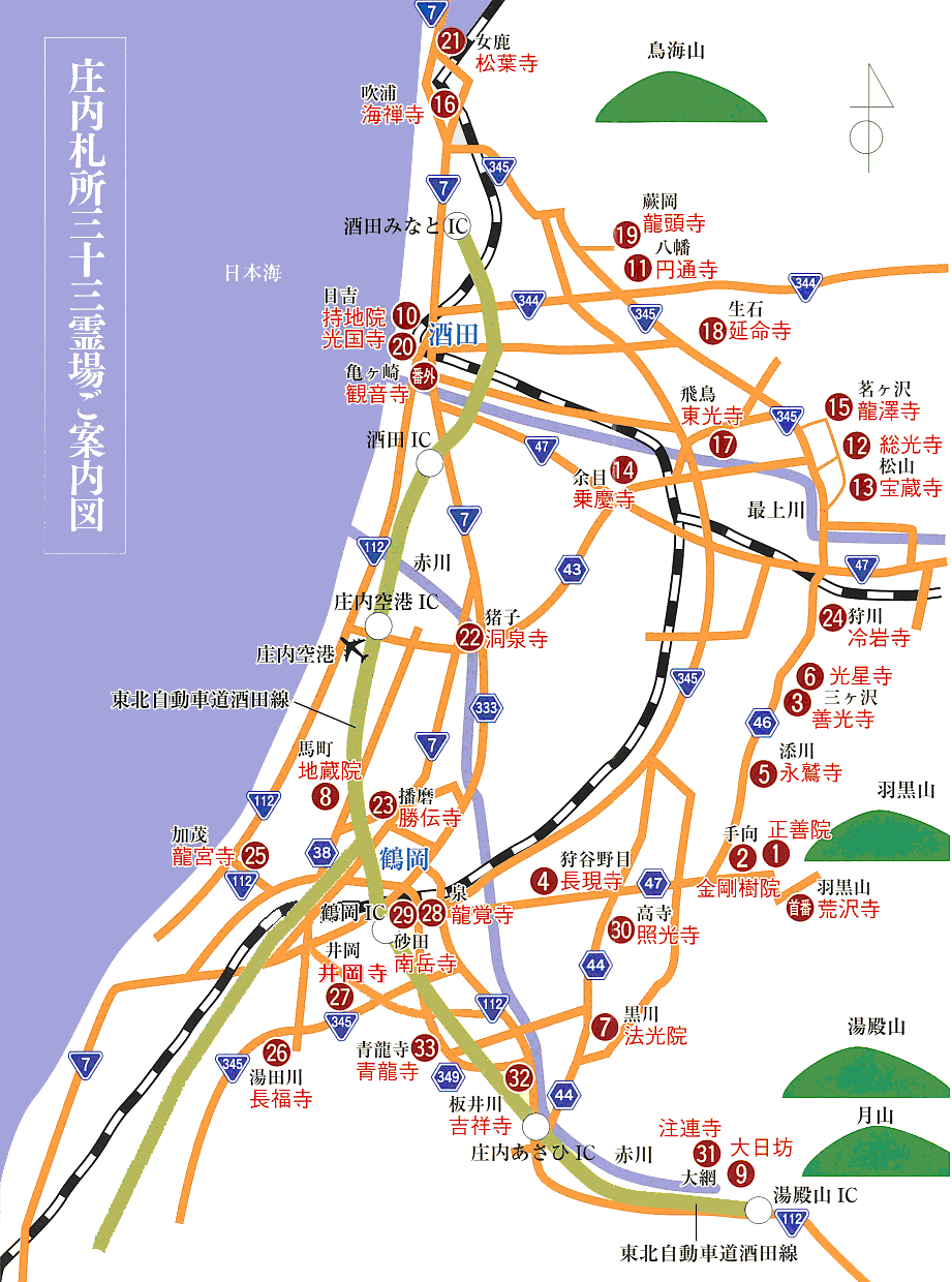 | 第十二番 | 洞瀧山 総光寺 | 曹洞宗 | 聖観音 | 酒田市総光寺沢8 | 0234-62-2170 | N38.51.22 E139.58.15 |