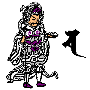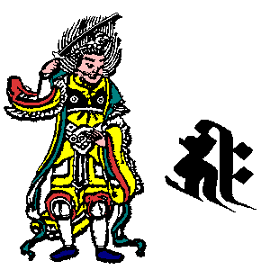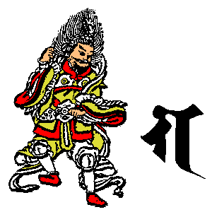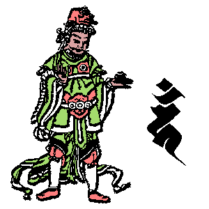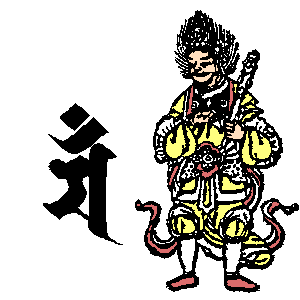 申 | ![]() | 斧を持つ。 すべての人々を大乗仏教の正しい教えに導く。 人々の悟りを確立させ、永遠のものにする 異端の道を行ずる者を菩薩道に導くという願い |